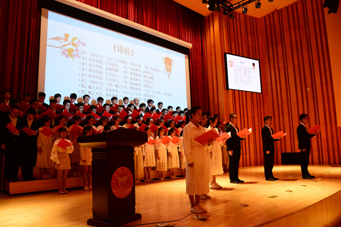 伴随着悠扬的古筝乐曲,大型朗诵节目《相约国学,致敬经典》拉开了活动序幕。法律系和信息工程学院的学子们或抑扬诵读、或浅吟低唱,唤起了在场观众对学习国学文化的记忆与热情,让人久久回味。